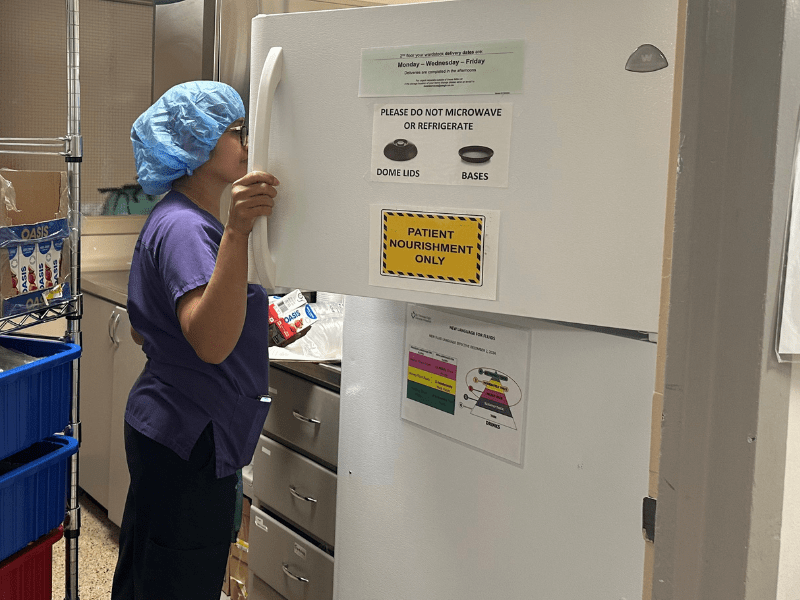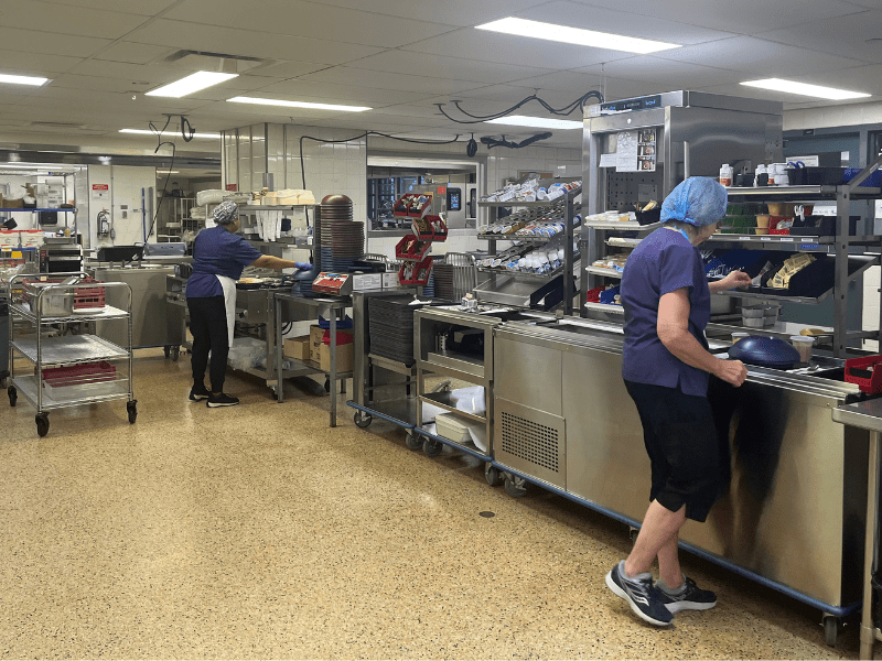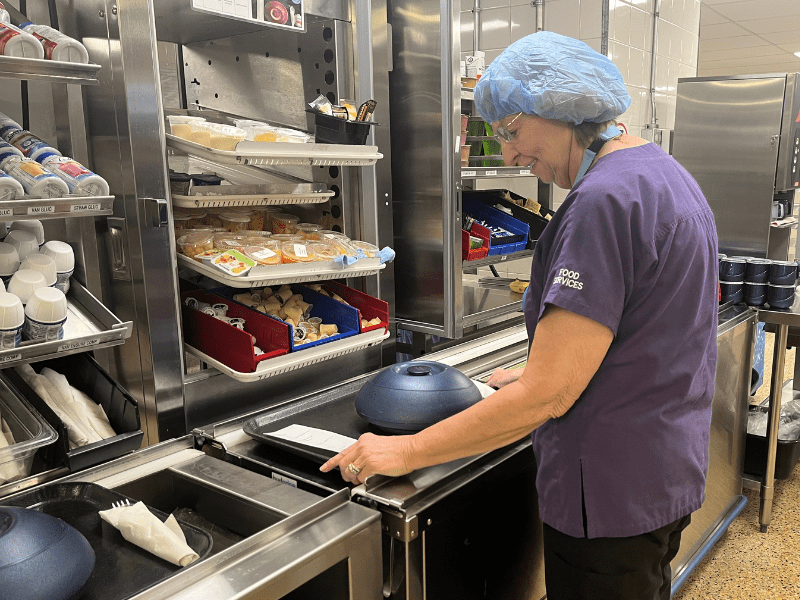 Using a dedicated elevator that runs straight from the kitchen to the acute medicine floors, the team ensures each tray travels safely and efficiently, so patients receive their meals hot and ready to enjoy.
