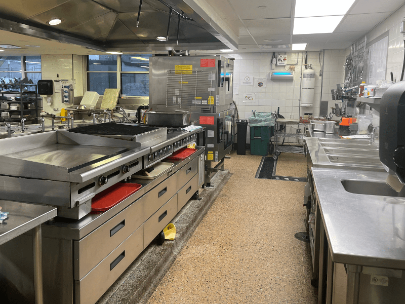 This is the main food preparation area, where our team works together to prepare meals for our patients every day.
