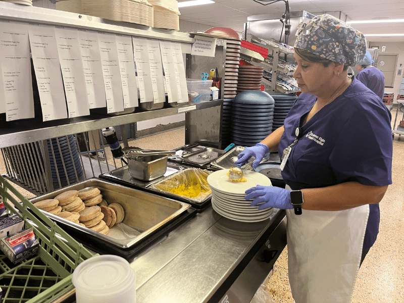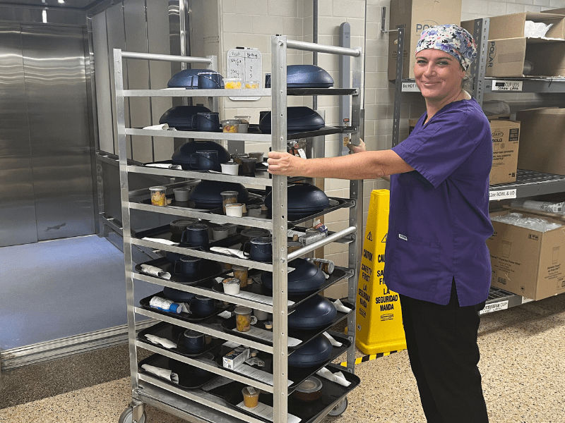Our Food Services team does far more than prepare meals – they plan, order, cook, and deliver every tray with care, ensuring each patient receives nutritious, well-balanced meals that support their healing and overall well-being.